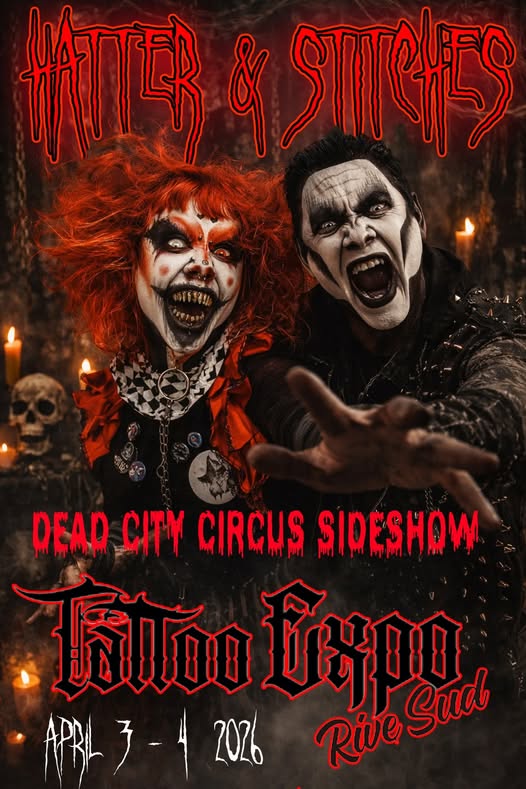 Ici, pas de fumée ni de miroirs. C’est un sideshow authentique, brut et sans filtre. Actes extrêmes Une ambiance de cirque sombre Choc et adrénaline Des performances inoubliables Ce n’est plus seulement un salon de tatouage… C’est une véritable expérience de cirque underground.